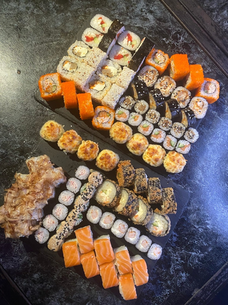 Ролл с сыром, омлетом и икрой масаго в белом кунжуте 8шт