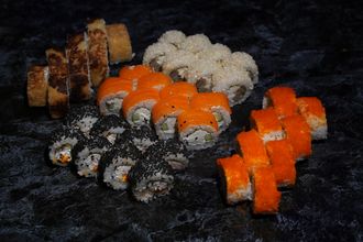 Ролл "Йоко" 8шт (рис, снежный краб, икра масаго, сливочный сыр, черный кунжут)