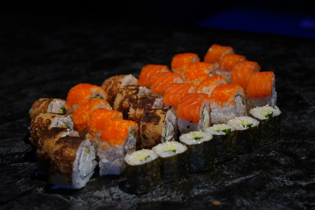 Ролл "Оранж-тито" 8шт (рис, краб снежный, огурчик, икра масаго)