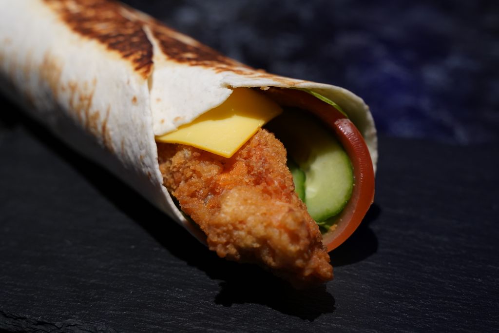 Тортилья с лососем 420 руб. Купить в 1 клик В корзину лепешка, овощи, фирменный соус, семга в кляре лепешка, овощи, фирменный соус, семга в кляре