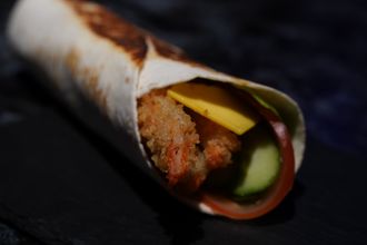 Тортилья с креветкой 420 руб. Купить в 1 клик В корзину лепешка, тигровая креветка, в кляре, овощи, плавленный сыр, фирменный соус лепешка, тигровая креветка, в кляре, овощи, плавленный сыр, фирменный соус